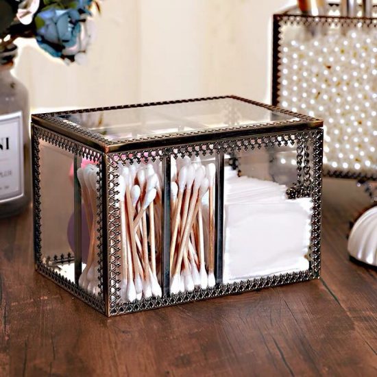 • PERFECT SIZE for DRESSER:Measures 14*10*10cm (6″*3.94″*3.94″),4 UNIQUE COMPARTMENTS – compartments for holding jewelry, small keepsakes,Cotton swabs, Lipstick, Puff, Perfumes, puff and decorative items.