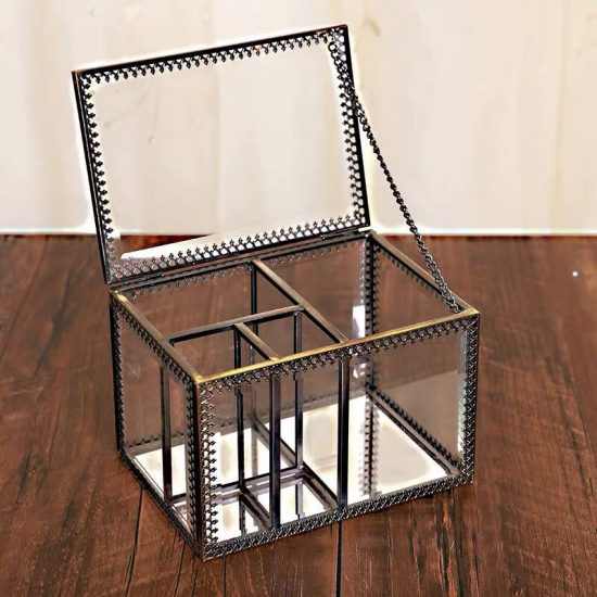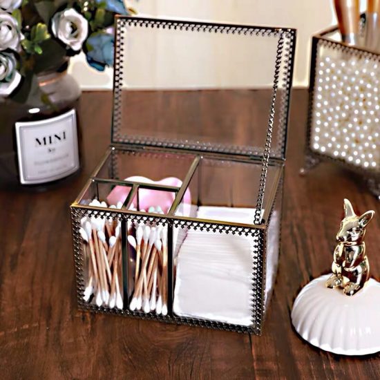 The glass box allows you to display your accessories, jewelry and keepsakes in an organized beautiful way. A great addition to your vanity or dresser, can also be used as a décor piece in any room in the house!